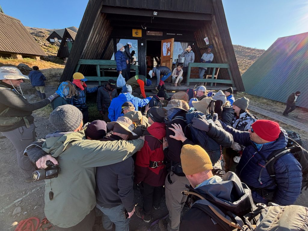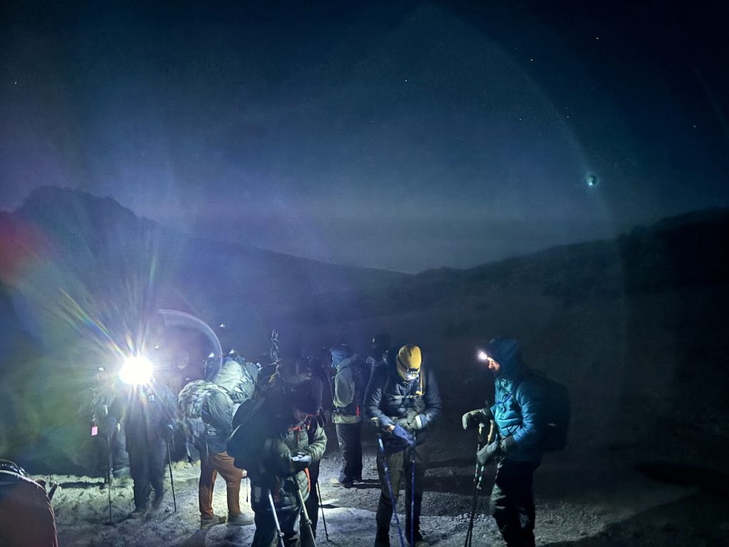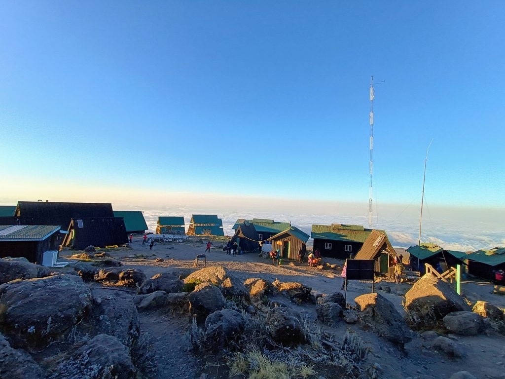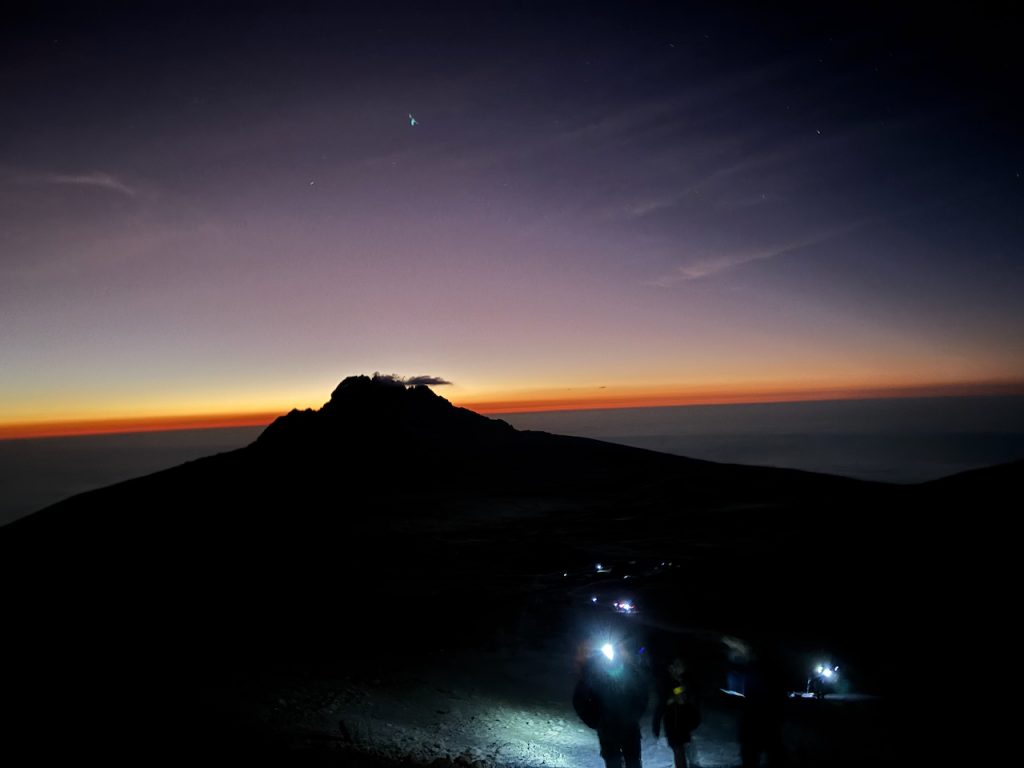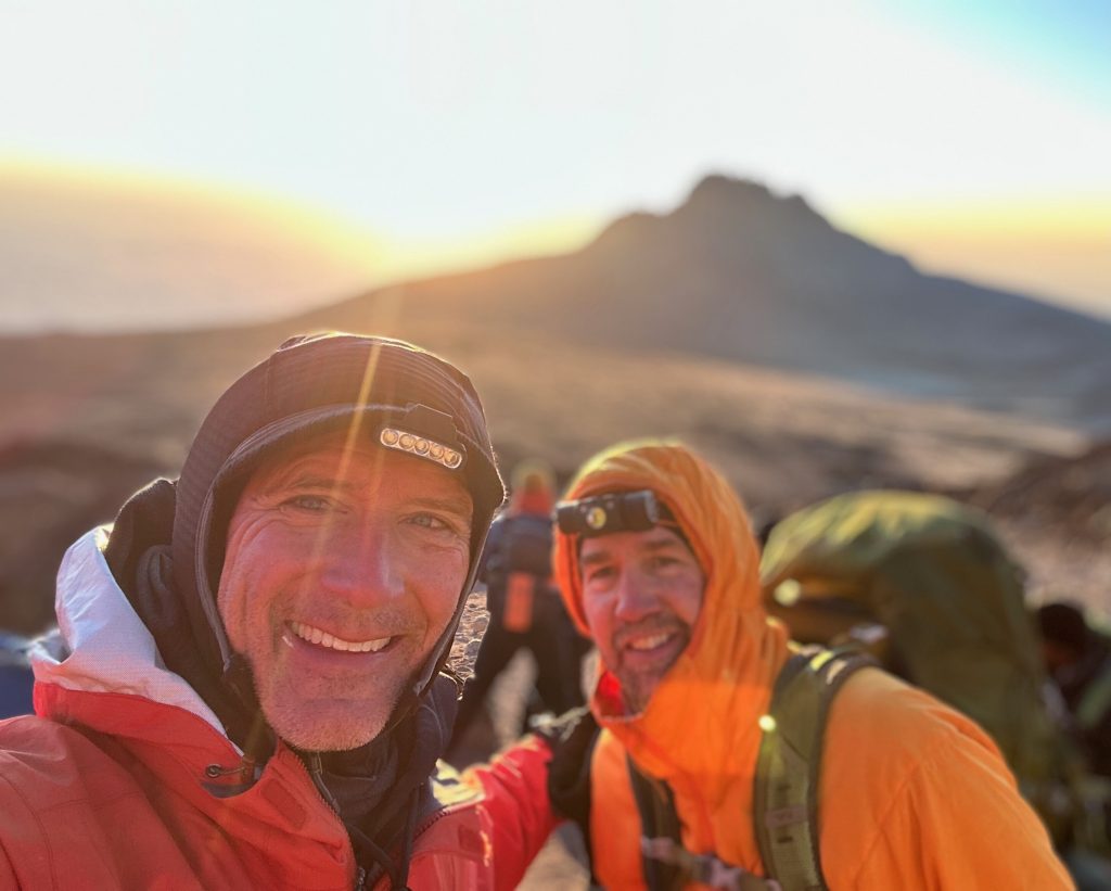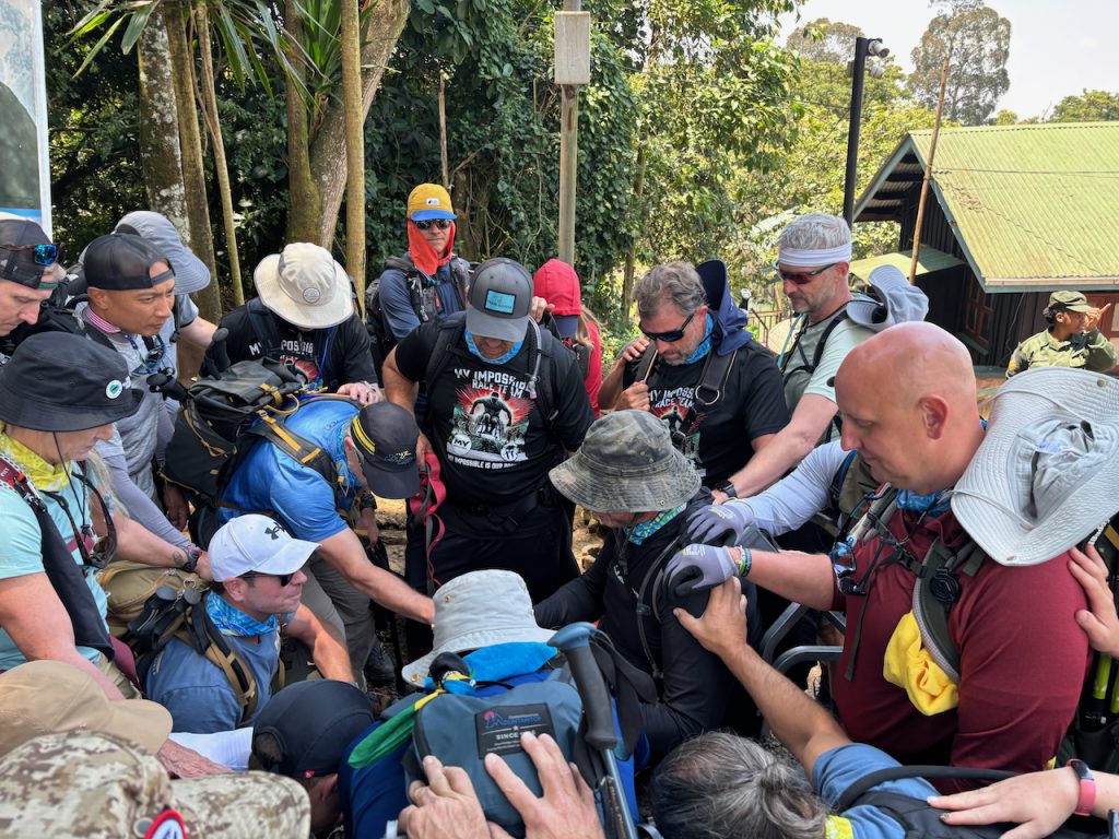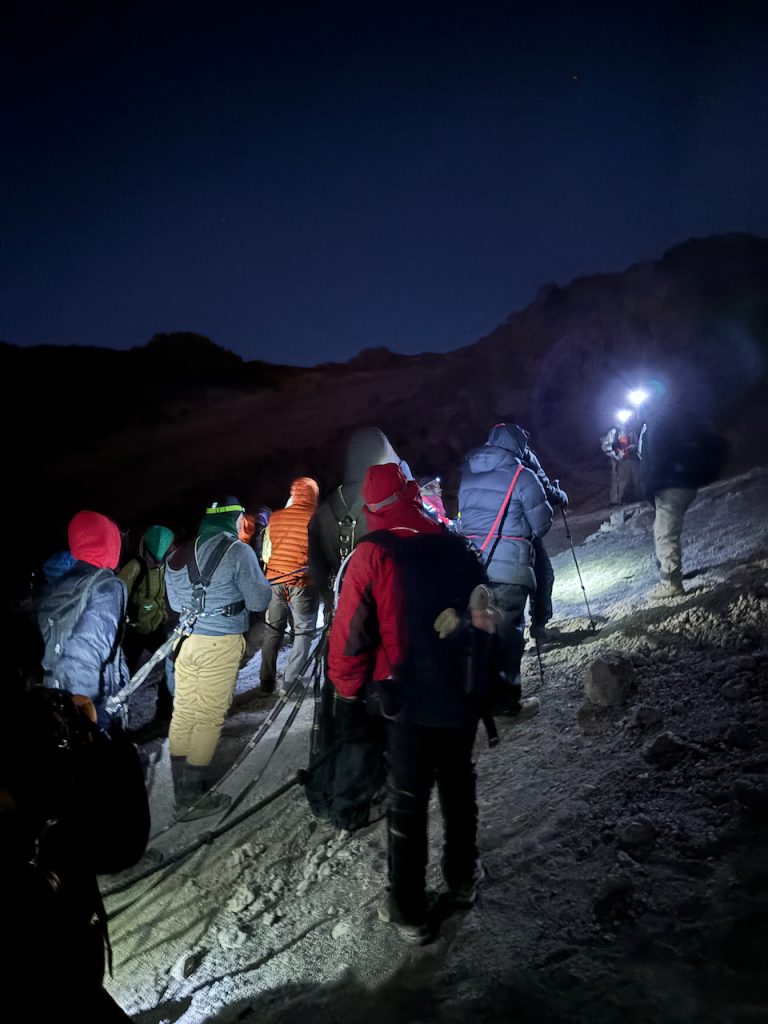 I was still concerned about the judgement calls of the guides, as I could see that Jeff and the wheelchair team were still making their way up. We ran into that group just above Gillman’s Point and were shocked to hear that they were still going for the summit. Another teammate and I talked to the owner of the company and inquired why they were not turning back. He was adamant that the top was the goal, and they could get everyone there. I expressed my concern to several team members about their safety. It would be pitch black for them, plus getting colder. My mountaineering motto is always “getting to the top is optional, but getting down is mandatory.” They didn’t seem to share my concern, and they definitely were relying on the guides for advice, so I had to leave it. My team layered up, put on headlamps and hiked back down to the hut in darkness. We were all exhausted—physically and mentally. The climb down any mountain is always the hardest for me. The elation of the summit wears off, and you can easily let your guard down, dragging your feet and letting your mind wander. We reached the hut around 9pm, making it a 16 hour day.