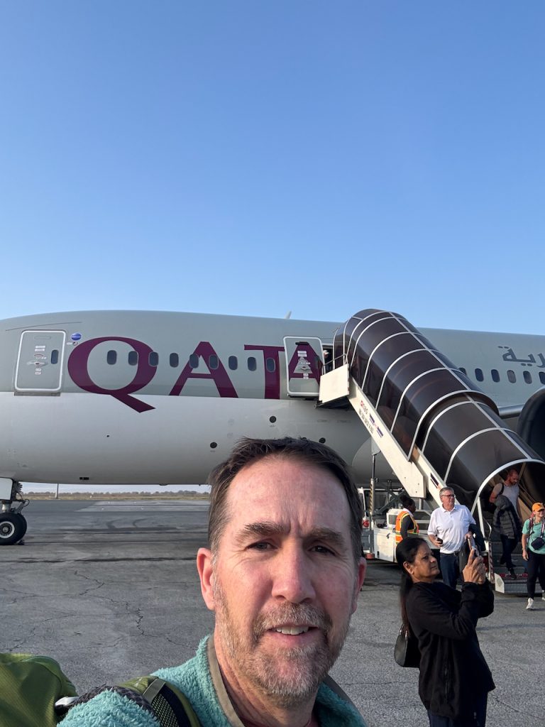After a long summer of guiding and public speaking, I left at 2am on Thurs, September 4th for the big trip. My first observation was that it took an incredibly long time to fly to Africa! Anytime we leave the state, the first leg is always the 3.5-hour Fairbanks to Seattle, so that was no different. Then I had an usually long layover in Seattle. Next, I boarded Qatar airline for the 16-hour flight to Doha Qatar. That was another long layover, but my “status” got me into a beautiful lounge where I ate, drank and even took a shower! The last flight was about 6 hours to the Kilimanjaro airport, arriving Saturday morning 9/6 at 7:30am. (Spoiler alert: the return flight was even longer!).