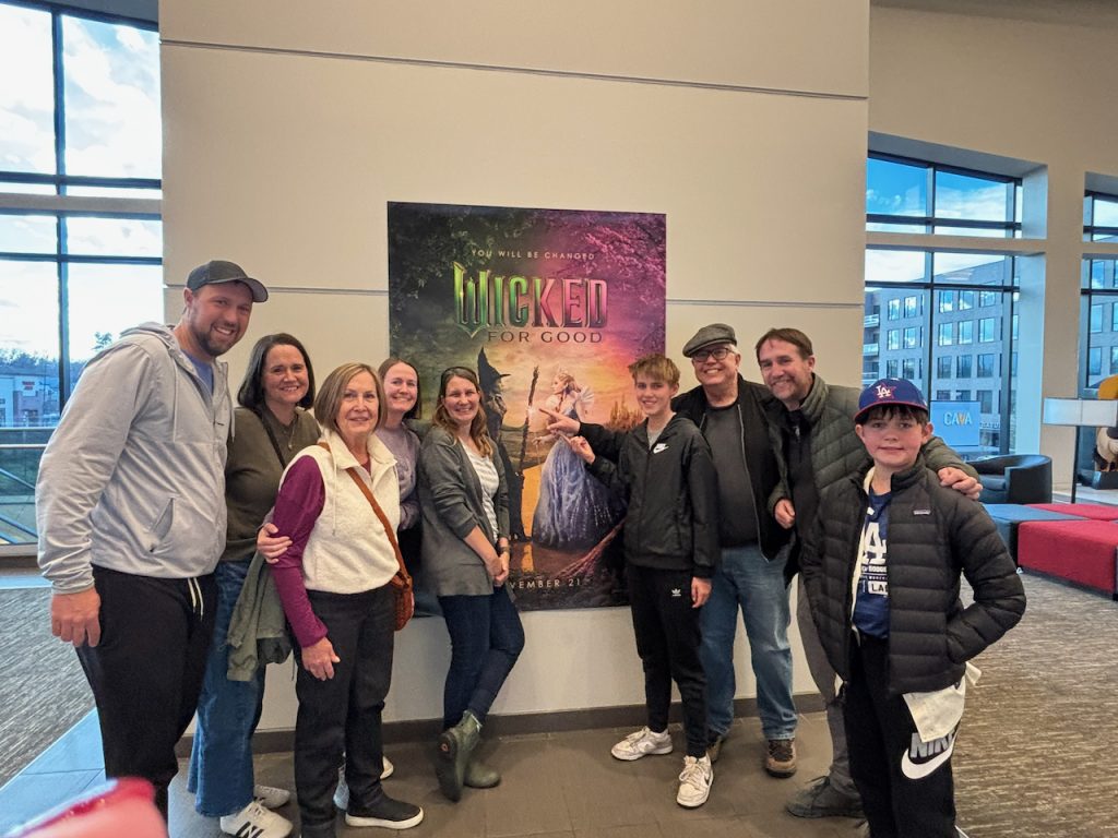 As a family, we replicated a trip to the movies to see part 2 of Wicked. I did not enjoy Wicked For Good as much as the first one, and I think my mother-in-law and Justin’s uncle agreed since they took a snooze during the very long movie.